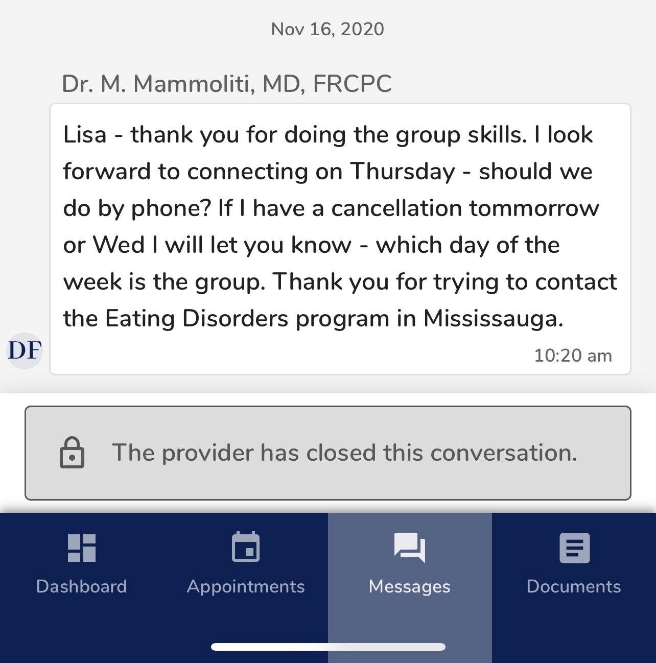 I later found out that she stopped billing the Ontario Health Insurance Plan (OHIP) for me on October 22, 2020. She continually messaged me for four weeks afterwards, unbilled. This doctor sent me more messages in that timeframe than I have sent emails (to her) in the almost seven years since I met her.